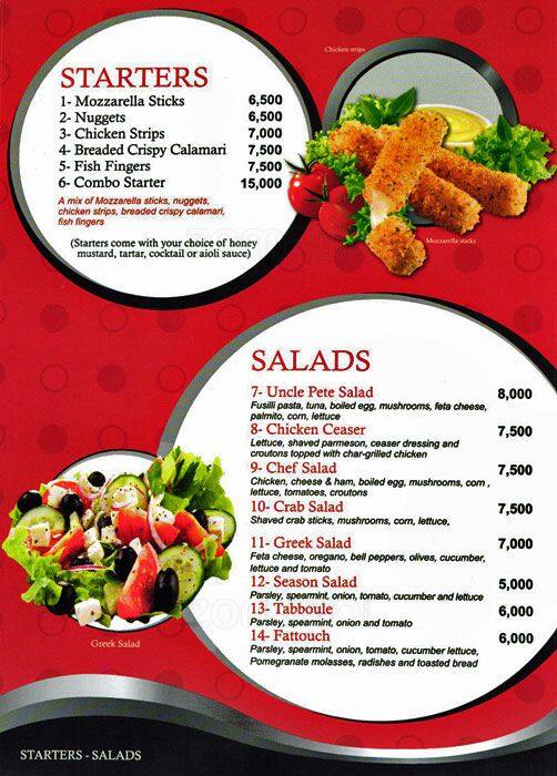 Uncle Pete Menu Menu For Uncle Pete Hadath Baabda District